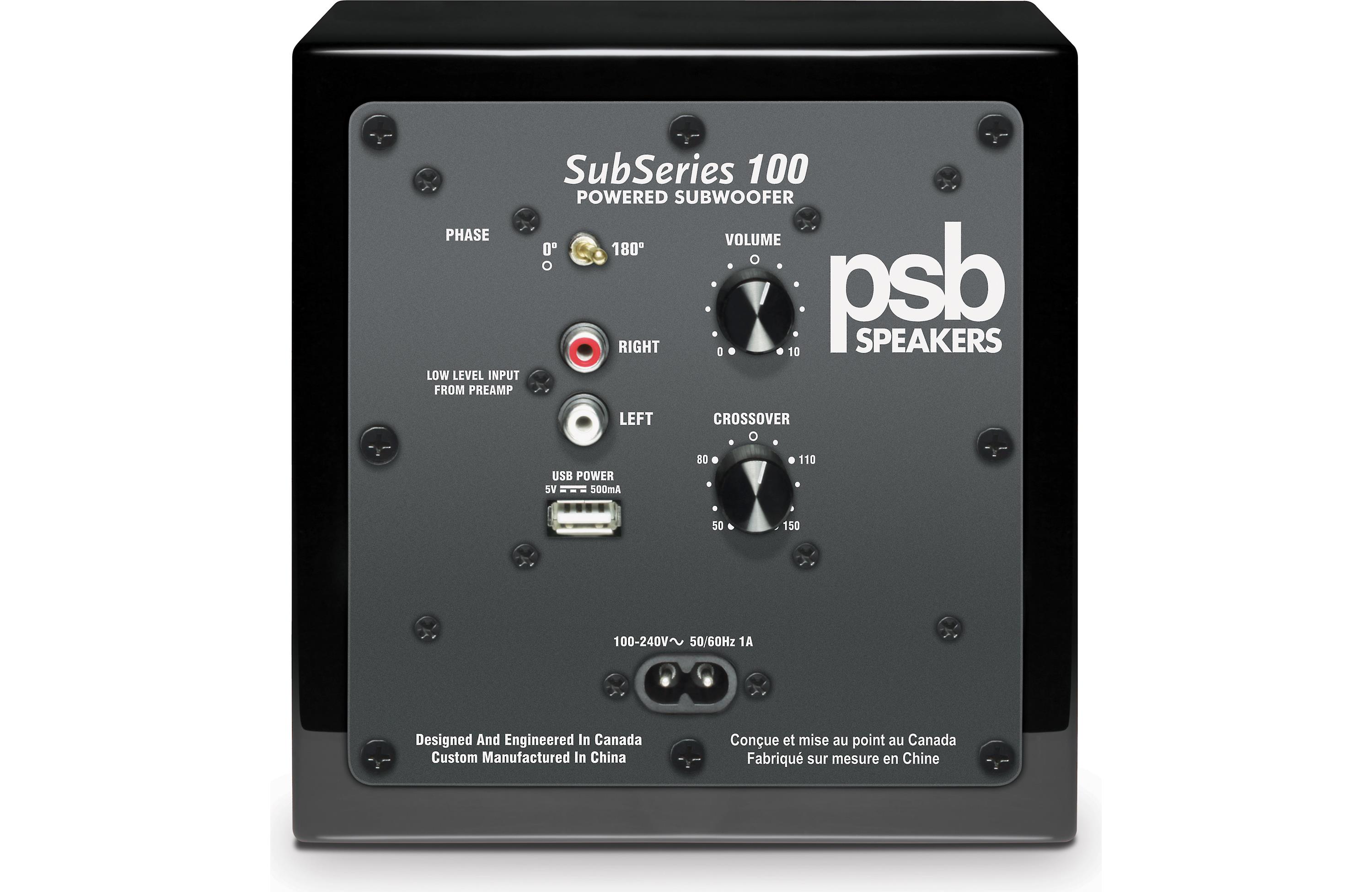 Несмотря на свою миниатюрность, SubSeries 100 является полноценным представителем серии сабвуферов PSB Speakers, и оснащен всеми необходимыми регулировками, как и его старшие братья. В активе SubSeries 100 регулировка уровня громкости, настраиваемая частота кроссовера и поворот фазы – все это позволяет точно согласовать звучание компактного сабвуфера с любой аудиосистемой.