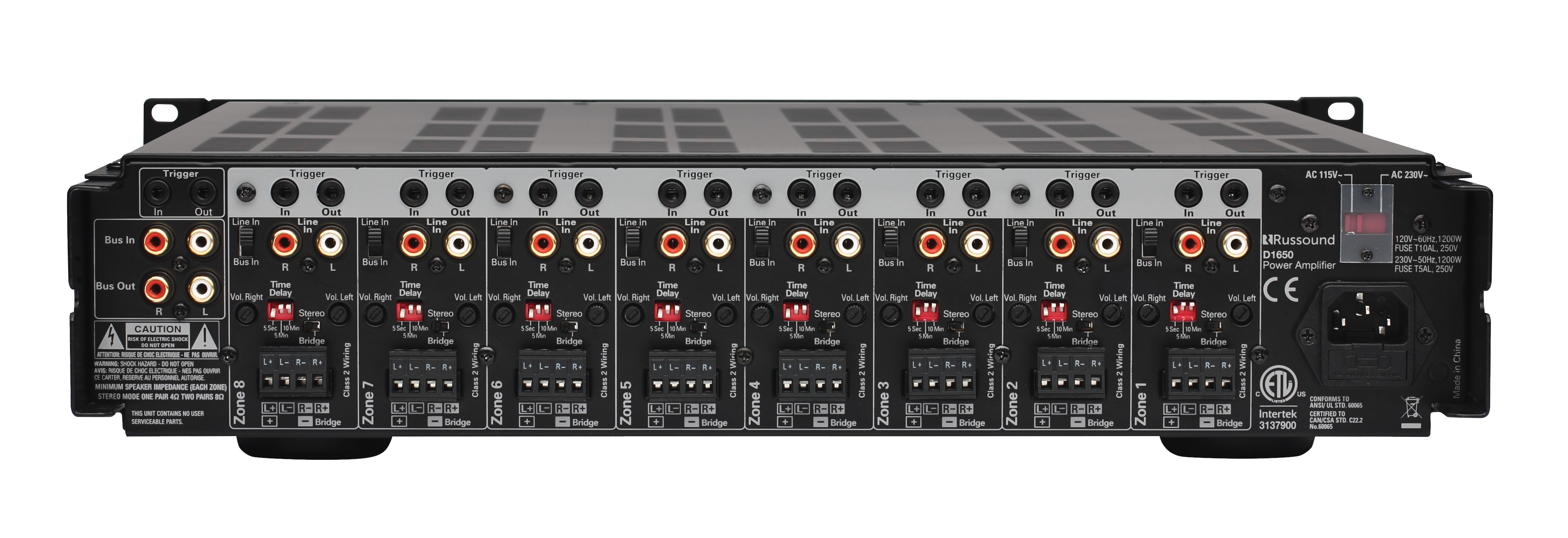 Цифровой многоканальный усилитель Russound D1650 предлагает необходимые профессиональным инсталляторам функции, при этом имеет небольшой вес, меньшее шасси и более эффективную мощность класса D. Многофункциональный дизайн D1650 идеально подходит для требований распределенных аудио систем, а также совместим с регуляторами громкости Russound. 16 каналов D1650 в расположены как стерео пары для разумного усиления и пользовательских конфигураций для каждой из 8 зон.
