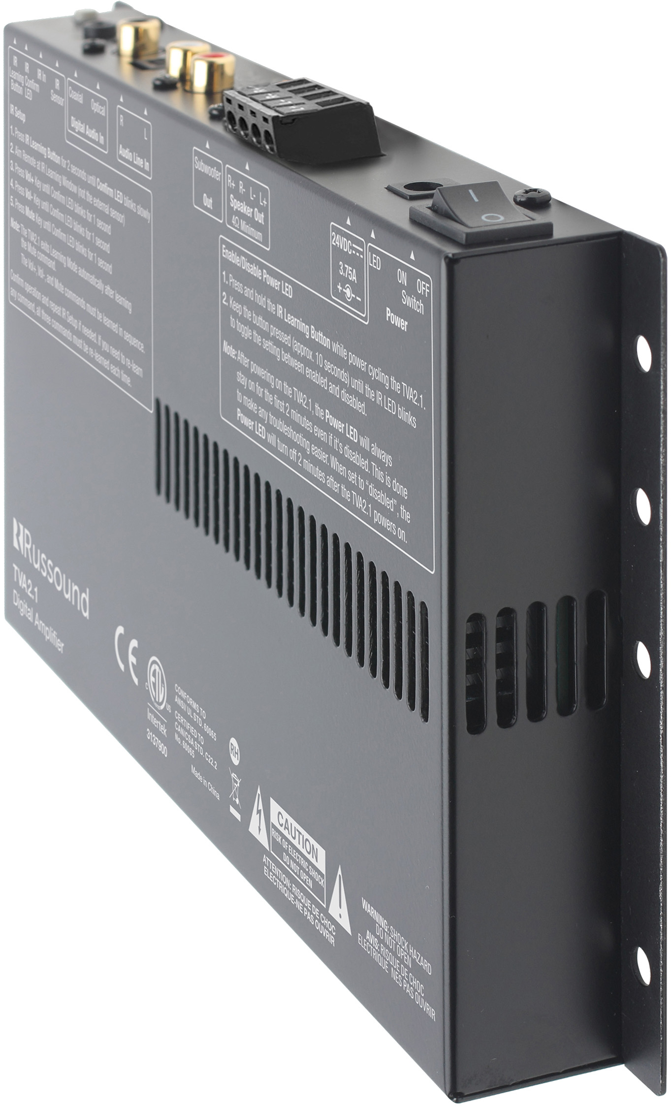 The TVA2.1 delivers smooth, robust sound for an enhanced viewing experience. On-board IR learning allows its volume to be seamlessly controlled by the TV or cable box’s remote control.