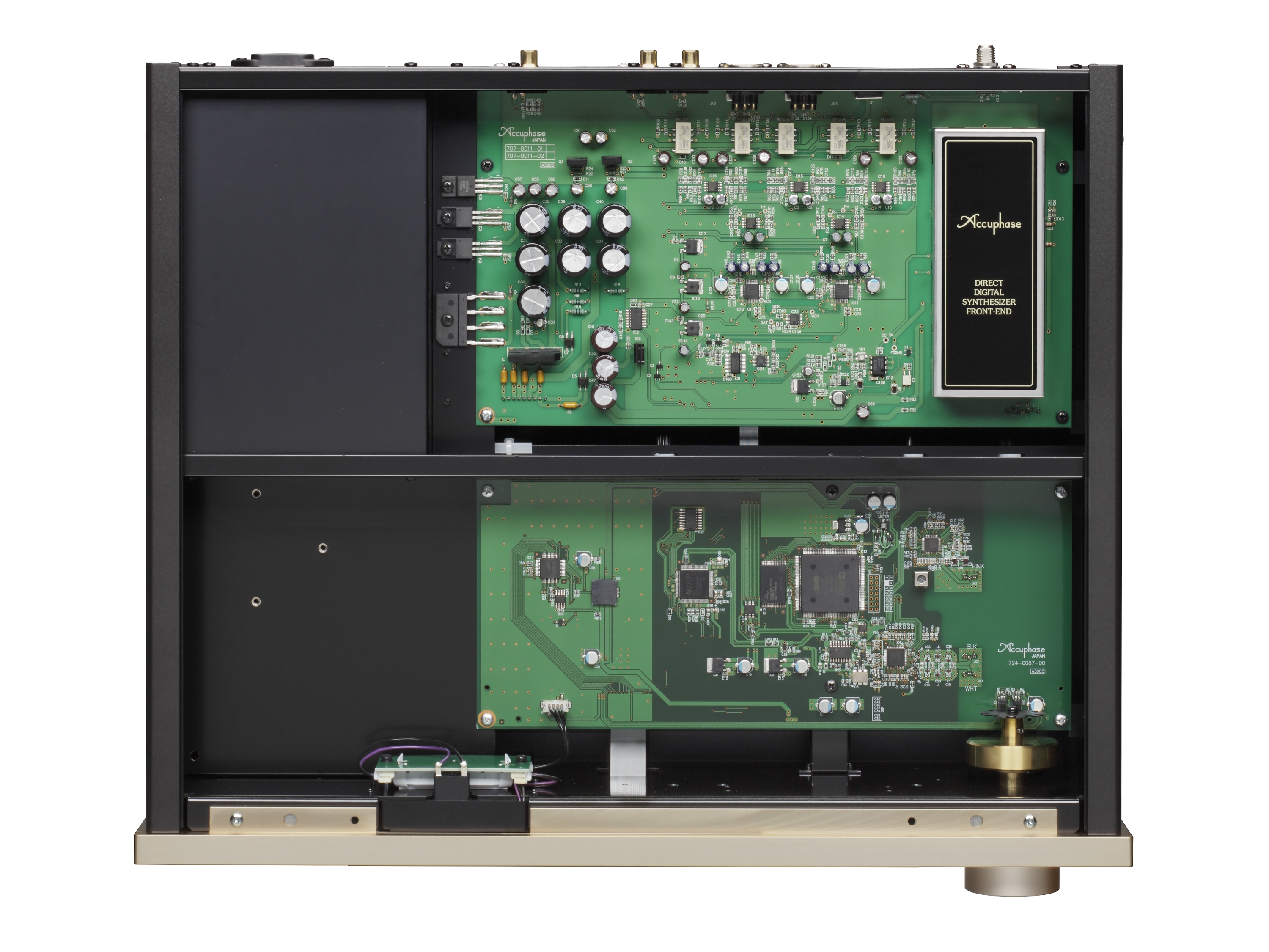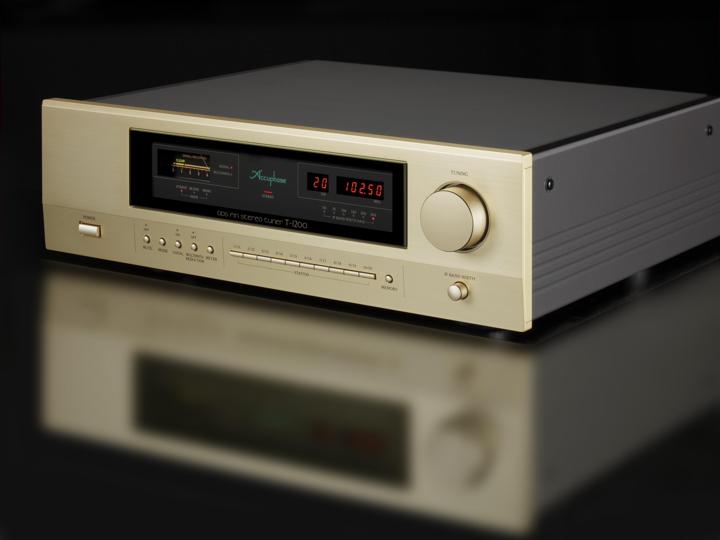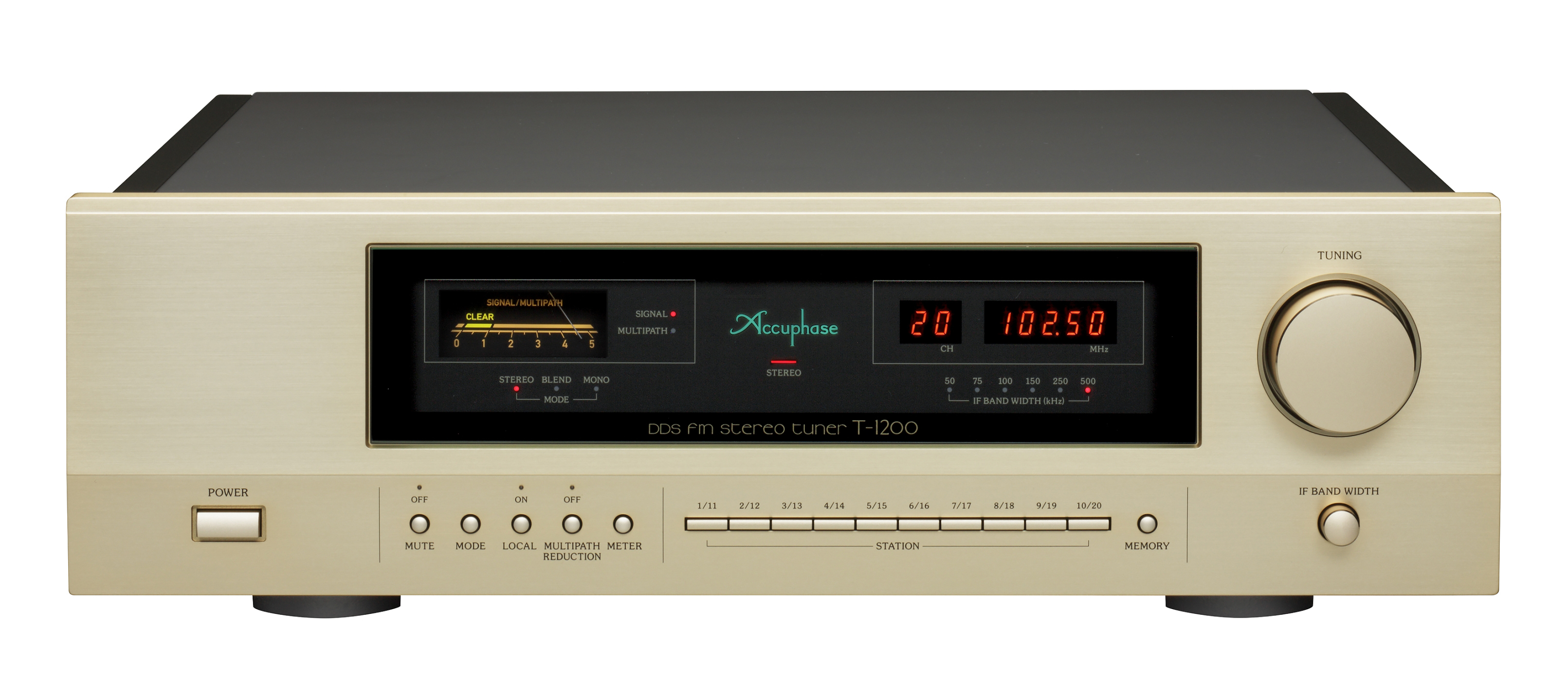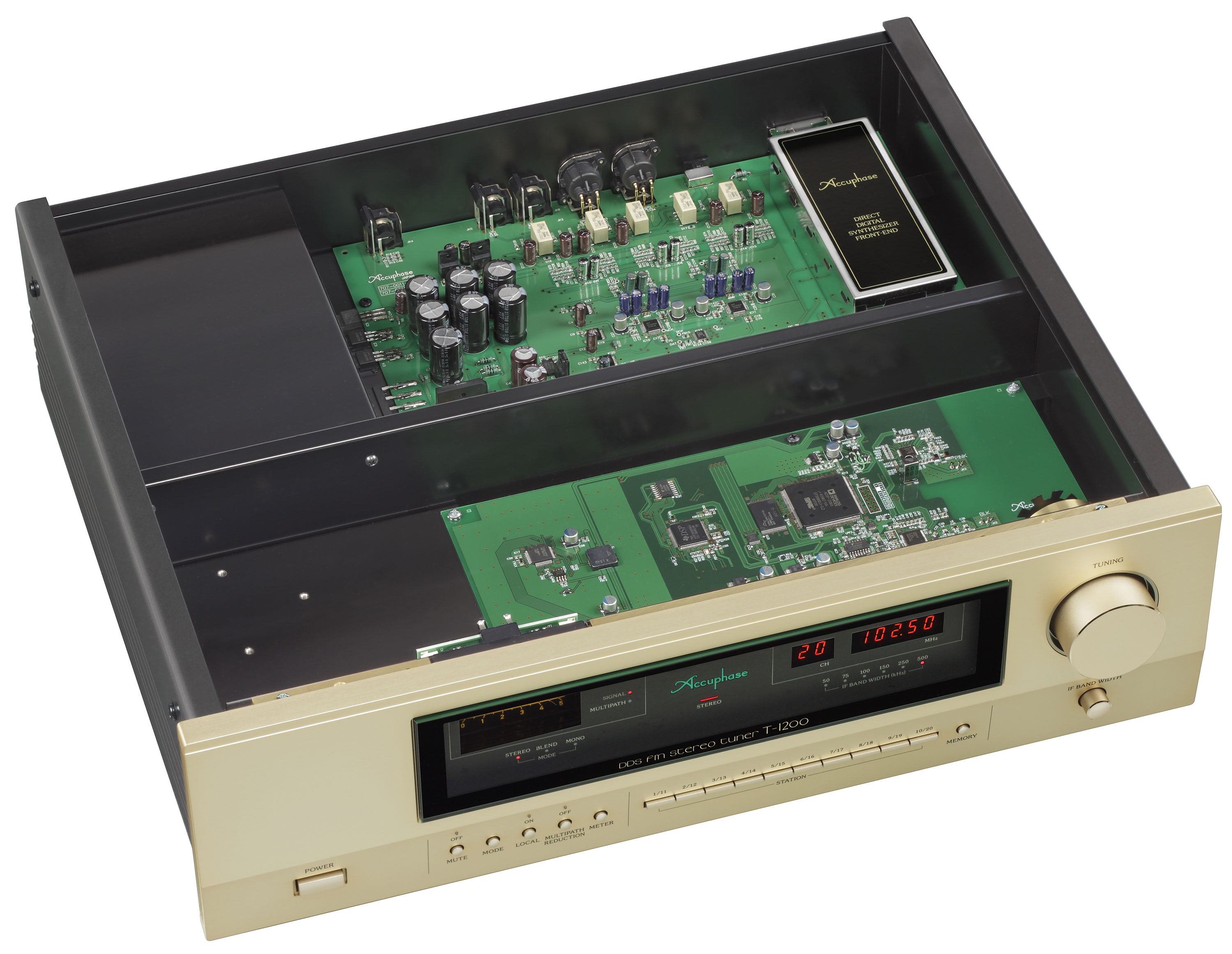 FM тюнер T-1200 является преемником модели T-1100 с усовершенствованной цифровой обработкой сигнала. Цифровая обработка построена на высокоскоростном и высокоточном чипе DSP и после этапа промежуточной частоты (ПЧ) все функции тюнера реализуются с помощью цифровой обработки сигнала. Меломаны и любители музыки могут наслаждаться стерео FM в лучшем виде. Все функции нового тюнера, начиная с диапазона промежуточной частоты,работают на цифровом уровне. В дополнение к настройке памяти на 20 станций устройство сохраняют связанные с ними параметры приема, такие как полоса пропускания ПЧ, моно и предварительное затухание.Используя сочетание новейших радиочастотных схем со сложной цифровой обработкой сигналов, большинство основных функций после промежуточной частоты, таких как фильтр ПЧ с переменной пропускной способностью, многолучевое сокращение, цифровой FM-демодулятор и цифровая демодуляция DS-DC были перенесены в программное обеспечение на DSP чип. T-1200 оснащен фильтром с переменной 6-кратной полосой пропускания в диапазоне IF для предотвращения помех,цифро-аналоговым преобразователем типа MDS,функцией многоточечной редукции,локальным генератором без PLL-контура и работает на революционном принципе DDS для локального осциллятора.Цифровой FM-демодулятор устраняет искажения и шум до минимума,а DS-DC обеспечивает идеальную стерео демодуляцию с технологией DSP.Аналоговые сигналы выводятся через сбалансированные XLR и RCA разъемы,также доступен коаксиальный S/PDIF-выход.